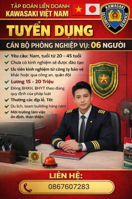Ưu tiên đã có kinh nghiệm bảo vệ, hoặc đã qua công an, bộ đội.